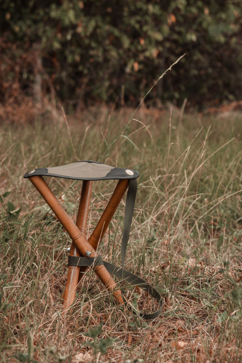 Tronožac visine 50cm u rasklopljenom stanju, sa opcijama raznih dezena sedišta. Sadrži kaiš za nošenje.